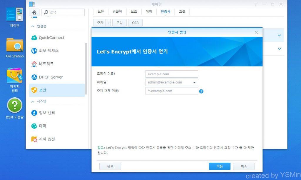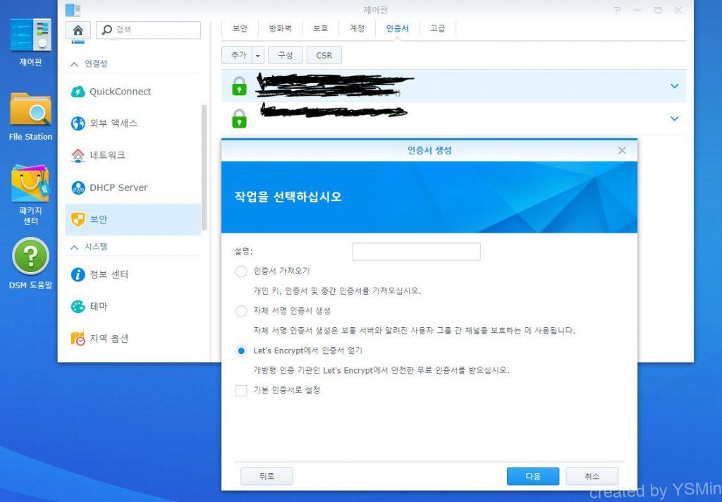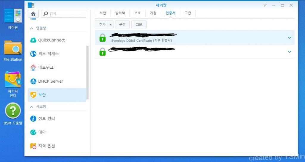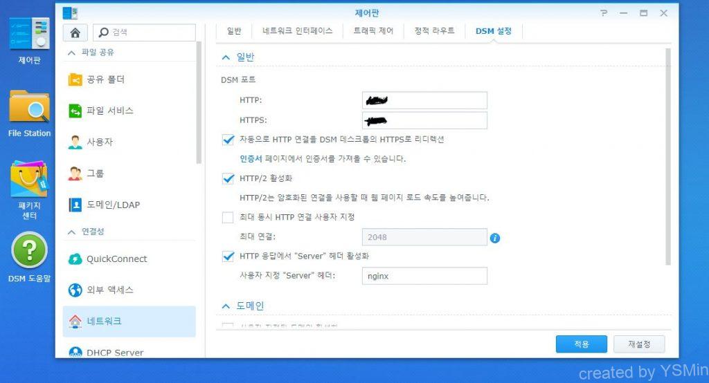 제어판-네트워크-DSM 설정에서 “자동으로 http 연결을 DSM 데스톱의 HTTPS로 리디렉션”을 선택 적용한다.