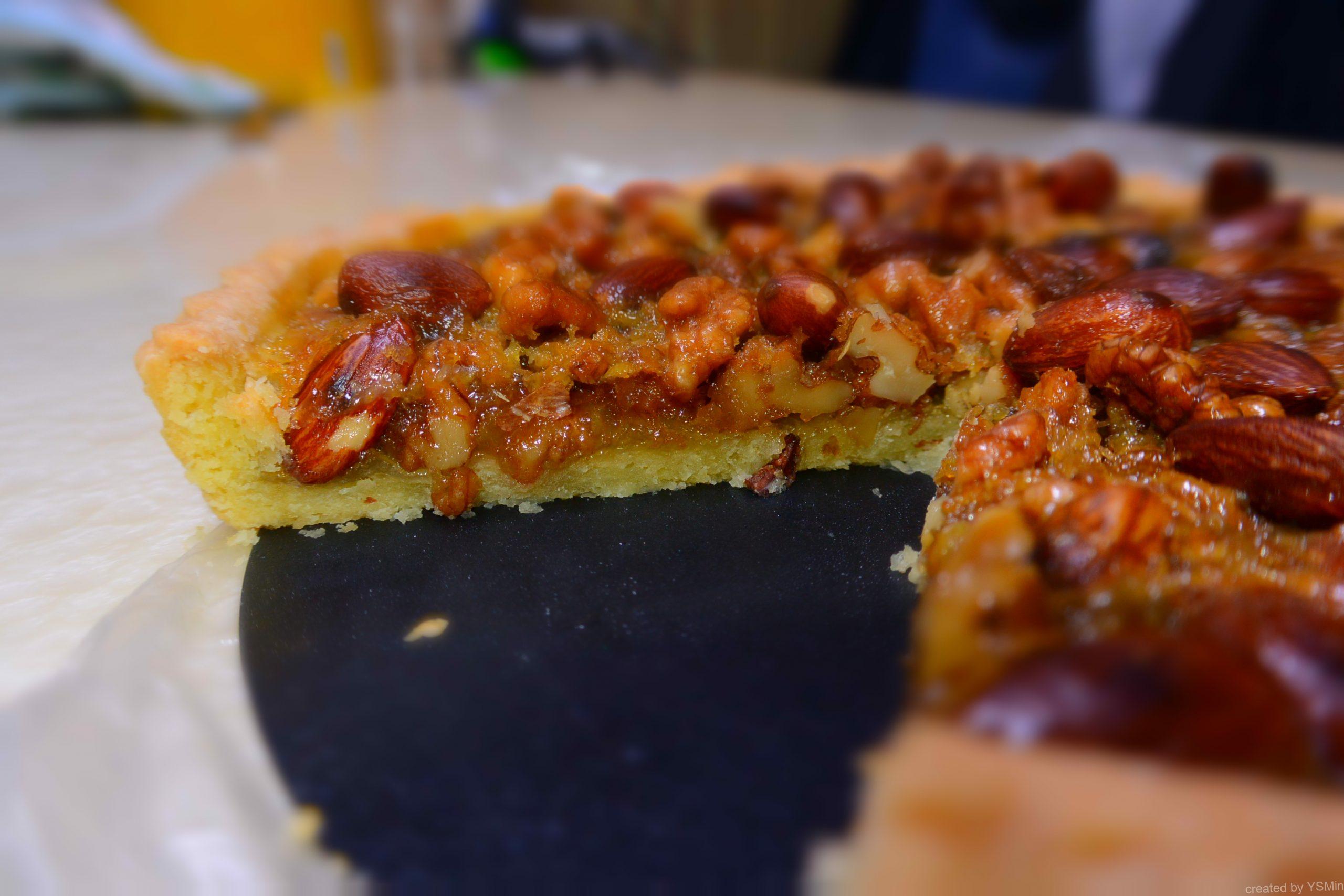 호두를 뿌린 반죽위에 부어주고 180도 오븐에서 20~25분 구워준다. 필링을 부을때 팬의 2/3 정도만 차게 해주어야지 오븐에 익으면서 넘치지 않는다.