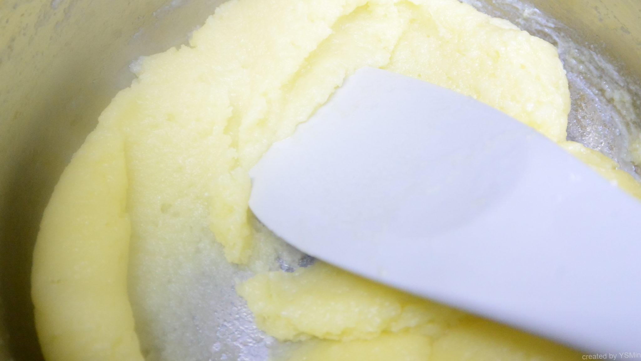 1) 실온의 부드러운 버터를 주걱으로 가볍게 푼다.
