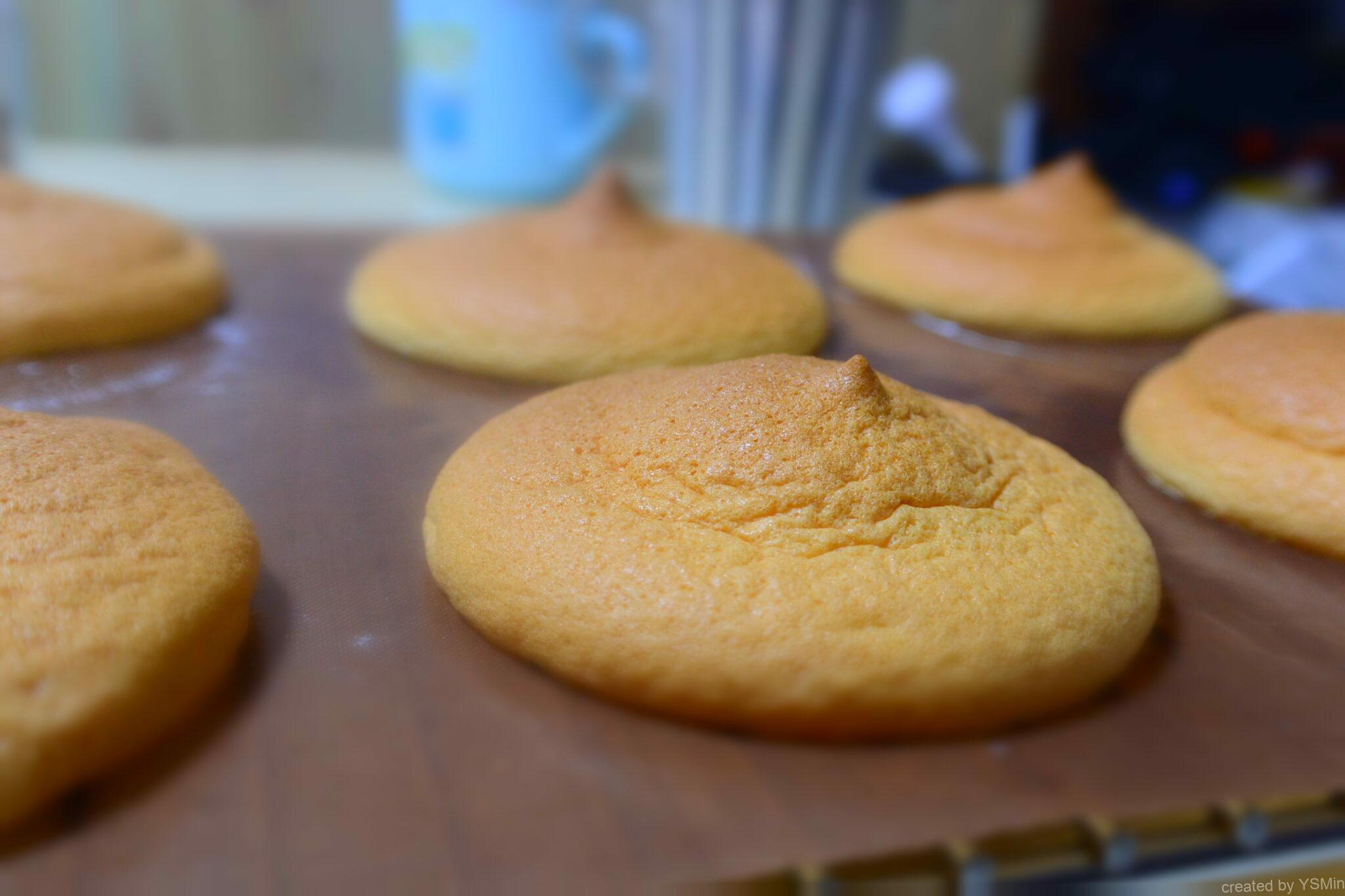 짤주머니에 옮겨 담고 팬에 적당한 크기로 패닝 해준다. 미리 원을 그려두면 편하다. 반죽의 두께는 도톰하게 해준다.