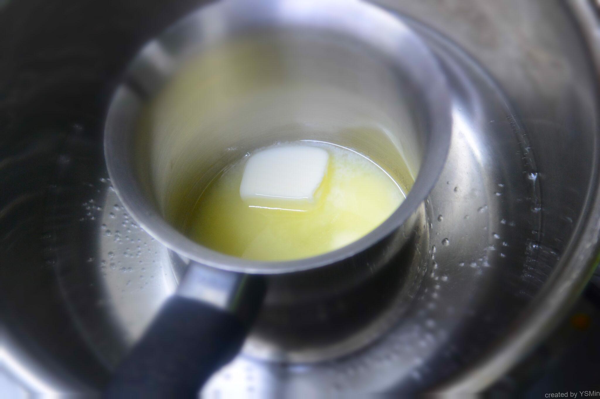 크림치즈는 상온에서 부드러워진 것을 사용하고 부드럽게 풀어준다. 무염버터를 넣고 잘 섞어 준다. 잘 안풀어지면 중탕으로 풀어준다.